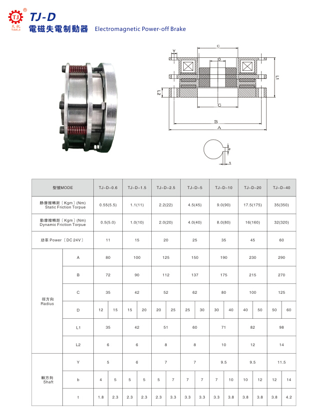 东莞天机传动(台湾天机牌)生产厂家制造销售的电磁失电制动器又称失电刹车器,常用的是DC24V直流电压,常用于机床设备、智能辅助设备、冶金设备、食品包装设备、轻工设备、重工设备等。
